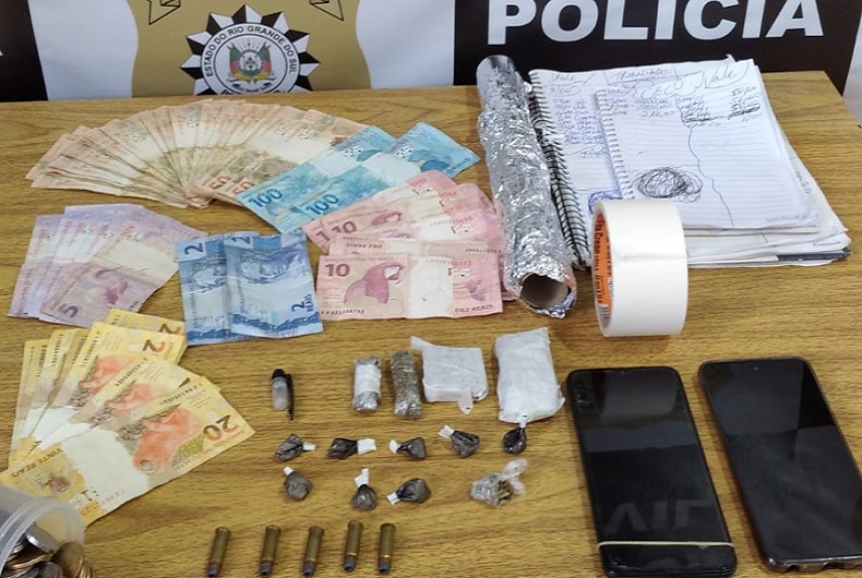 De acordo com a polícia, a dupla foi flagrada com drogas embaladas para venda, dinheiro, anotações referentes ao tráfico e munições. Segundo a delegada Graciela Foresti Chagas, a investigação teve início em julho, culminando na prisão do casal nesta quinta.