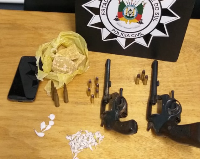 Agentes da Delegacia de Polícia de Rio Pardo prenderam um homem, de 21 anos, em flagrante por tráfico de drogas e porte ilegal de armas de fogo nessa quarta-feira, 24, em Vila Pinheiros.