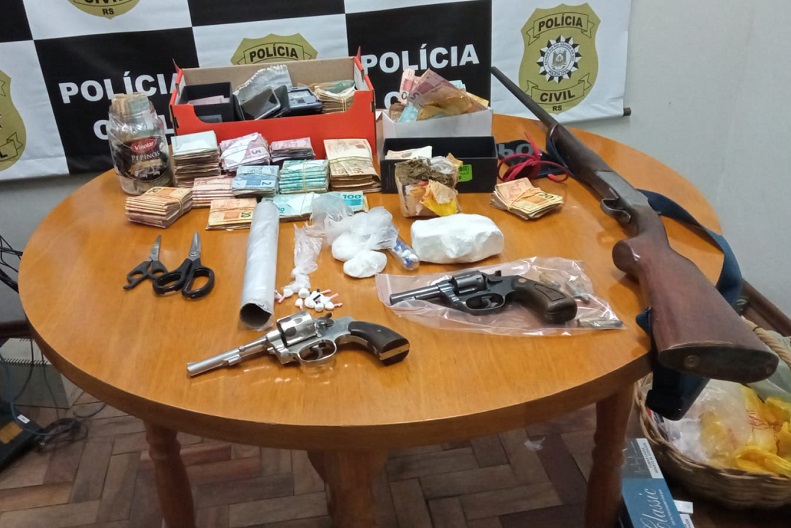 Durante as buscas foram apreendidas três armas, grande quantidade de drogas, mais de R$ 60 mil em dinheiro e um veículo. Três pessoas, duas mulheres e um homem, foram presas preventivamente.