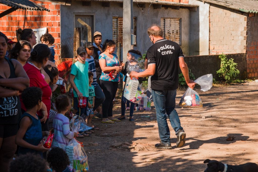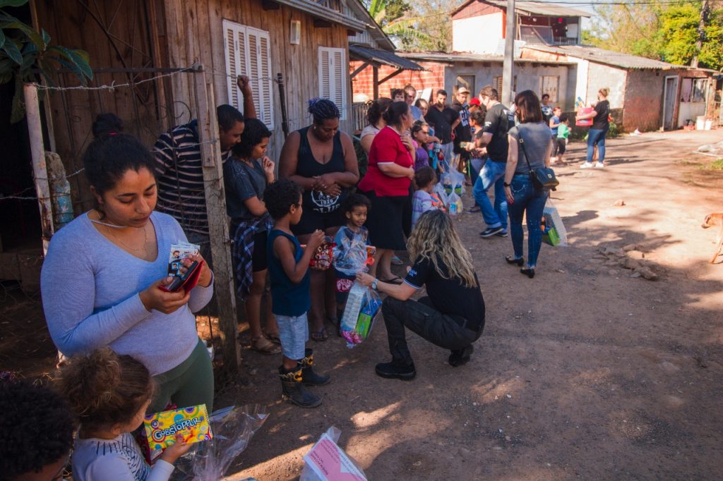 Quem coordenou a ação foi a delegada Raquel Schneider. Segundo ela, o ato surgiu a partir de um grupo de policiais que se reúne frequentemente para realizar ações sociais. “Nós já havíamos vindo aqui realizar entrega de cestas básicas, e percebemos a quantidade de crianças que conseguiríamos atender com essa ação. Fomos atrás de apoiadores e tivemos várias empresas que nos ajudaram”, explicou.