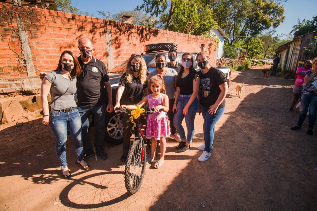 O ponto alto foi o sorteio de uma bicicleta para a criança que adivinhasse um número entre zero e 200. A sortuda do dia foi Vitória Rafaela Amabília, a Rafinha, de 9 anos. Ela acertou o número do sorteio, que era o 197, telefone de emergência da Polícia Civil, e levou pra casa uma bela bicicleta da marca Caloi, oferecida pela Faccin Bicicletas.
