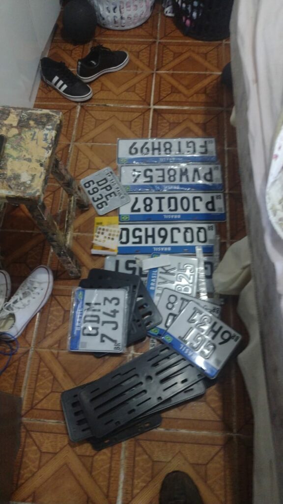 A primeira ocorrência foi registrada no início do mês de abril, quando dois homens foram presos fabricando placas falsificadas, que seriam utilizadas para clonagem de veículos roubados.