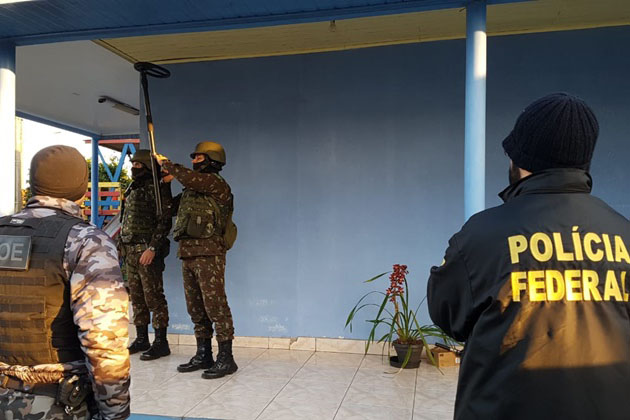 A Polícia Federal realizou na manhã desta quinta-feira, 2, a Operação Terra Sem Lei na Reserva do Votouro, em Benjamim Constant do Sul. A ação conta com o apoio da Brigada Militar e do Exército. No local, foram cumpridos 14 mandados de prisão preventiva e 18 de busca e apreensão.