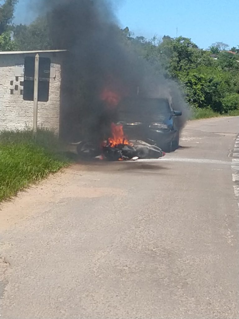 A vítima caiu logo em seguida à colisão, mas a motocicleta ficou presa ao carro e foi arrastada. Os dois veículos acabaram pegando fogo. O ferido foi encaminhada ao hospital pelo Serviço de Atendimento Médico de Urgência (Samu), após pedir ajuda a pessoas que passavam pelo local, já que o indiciado fugiu logo após o acidente.