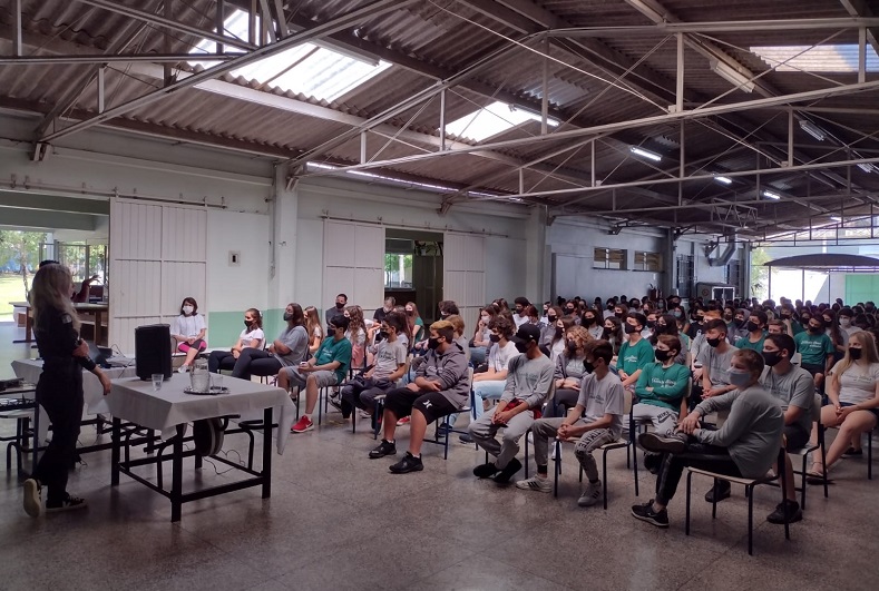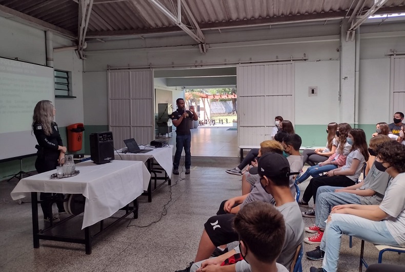 A Polícia Civil, por meio da Delegacia de Proteção à Criança e ao Adolescente (DPCA), ministrou nessa quinta-feira, 21, uma palestra para alunos das séries finais do Ensino Fundamental e Ensino Médio da Escola Estadual Ernesto Alves de Oliveira, de Santa Cruz do Sul. O tema abordado foi “Formas de prevenção a ações de natureza sexual contra crianças e adolescentes no ambiente escolar”. Os palestrantes foram o comissário Orlando Brito de Campos Júnior e a inspetora Graciele Bonaldo Facco. Integrantes do corpo docente da escola também prestigiaram a atividade.