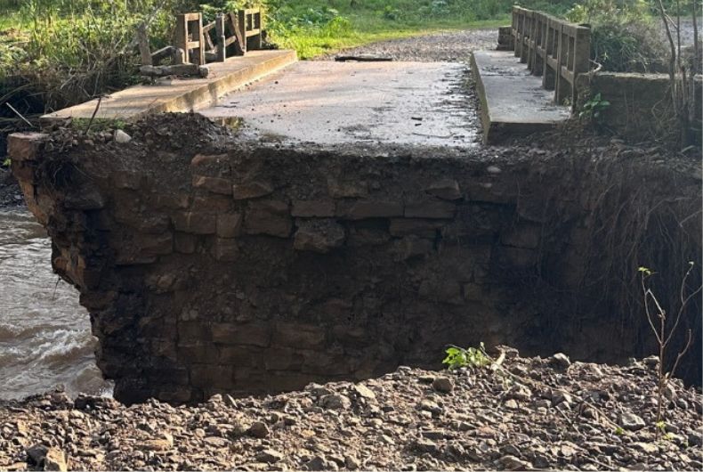 Cabeceira de ponte foi levada com chuvas | Crédito: Prefeitura de Sinimbu