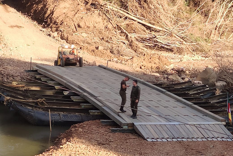 Conforme a prefeita Sandra Backes, a nova ponte não precisa ser desmontada se o nível do rio se elevar. “Eles nos avisaram que tirariam os acessos para veículos por prevenção, mas a passagem dos pedestres está autorizada”, explica. O local onde a estrutura foi montada – ao lado do Núcleo Germano Wink –, acrescenta Sandra, foi definido pelo Exército, e não pelo Município. A escolha se deu pela existência da estrada e pelo espaço no entorno, considerando que servirá de rota para caminhões, máquinas e outros veículos.