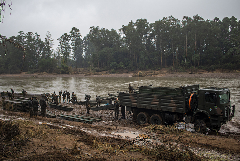 O 3º Batalhão de Engenharia de Combate (3º BE Cmb), de Cachoeira do Sul, instalou nessa quinta-feira, 16, uma passarela flutuante no Rio Pardo, na Prainha de Candelária. Essa foi a solução encontrada pelo gabinete de crise do município para que os moradores possam atravessar o curso d’água e ser liberada a ponte improvisada em madeira na RSC-287, na estrutura que teve a cabeceira levada pela enchente no dia 2 de maio.