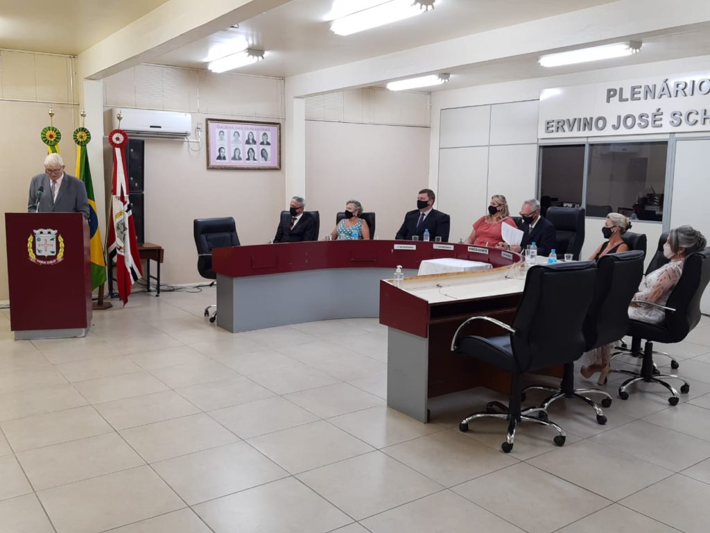 A posse do prefeito ocorreu na primeira sessão solene da Câmara de Vereadores. Flávio Daniel Schunke, o vereador mais votado na eleição de 15 de novembro passado, presidiu a eleição da primeira mesa diretora da nova legislatura. O ex-prefeito Guido Hoff (PSB) e sua esposa Laci Severo foram chamados para juntarem-se ao protocolo oficial, na instalação da primeira mesa diretora.