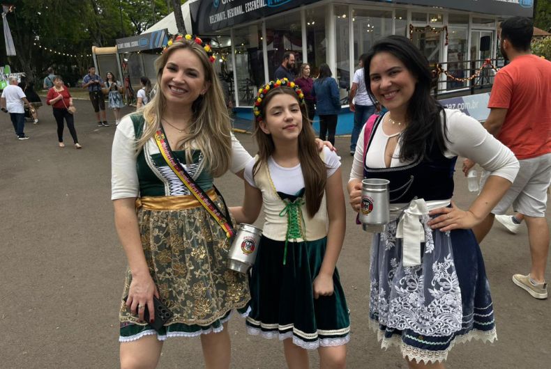 Os trajes, principalmente os vestidos, um mais lindo que o outro, chamam a atenção e vestem desde bebês até senhoras da melhor idade. E pensar que anos atrás muitas pessoas tinham vergonha em usar a roupa típica, mesmo garantindo a gratuidade no acesso ao Parque. Vindas de Venâncio, Maíra Martin, Daiane Cristina Padilha Basso e Maria Antônia Basso (foto) fizeram questão de usar os vestidos típicos para passear e se divertir pelo parque.