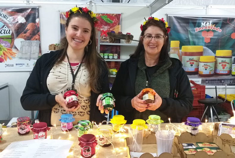 Uma das atrações da 37ª Oktoberfest é o pavilhão da agroindústria familiar. Podem ser encontrados os mais diferentes produtos feitos com matéria-prima colhida nas propriedades dos expositores. E um dos casos inusitados é o da Morangos da Rosa, de Cristal. Por R$ 12 é vendido o pote de geleia, que faz ótima combinação com pães, carnes e frios. O curioso é que tem as versões Cerveja e Caipirinha, além de Cebola Assada com Vinho. Não é alcoólico e tem chamado a atenção de muita gente.