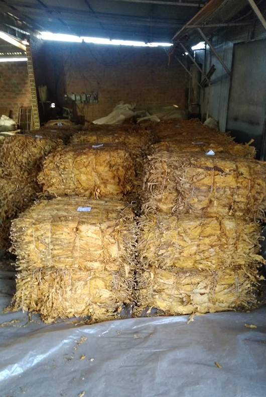 Se alguns produtores estão angustiados com o tabaco já na lavoura, outros ainda têm produto pronto no galpão, para ser comercializado. E igualmente preocupados. Os fardos prontos ao lado são do produtor Ariel Bohm, de Canguçu.