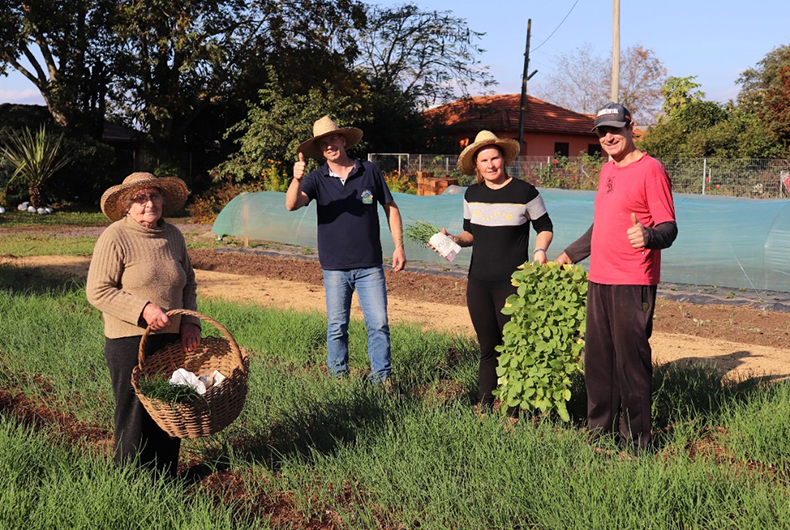 E ainda visitamos outra família, desta vez no sul do município, na localidade de Cerro Chato, ao lado da RSC-287. Ali conhecemos o Edson Joel Weise, 50, e sua esposa Tania, 45, que residem com a mãe dela, dona Aracia Mayer, 77, e são pais do Tiago, 24, estudante de Agronomia. Na propriedade de 16 hectares, plantam 25 mil pés de tabaco, cultivam arroz e diversificam ainda com ovos, carnes, morangos, verduras e, especialmente, mudas de cebolas (na foto acima, estão ao meu lado, junto aos canteiros de mudas). Para se ter uma ideia, semearam nada menos do que três quilos de sementes de cebola neste ano, o que não é pouca coisa, e vendem as mudas tanto a produtores quanto em casas de comércio da cidade, hoje seus clientes. São dois belos exemplos de diversificação, e com tabaco.