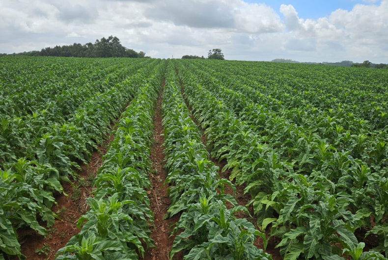 Entre as culturas agrícolas implantadas na região, o tabaco também precisa de chuva regular nesta época do ano. A foto acima, de uma de nossas lavouras, mostra que as plantas estão bem uniformes e desenvolvidas, e só querem umidade para concluir o crescimento e jogar a flor. Então poderemos fazer o desponte para que as folhas encorpem e expressem o máximo de seu potencial, garantindo uma excelente colheita. Por esses dias, chuva de 20 ou 30 milímetros seria excelente para essas lavouras.