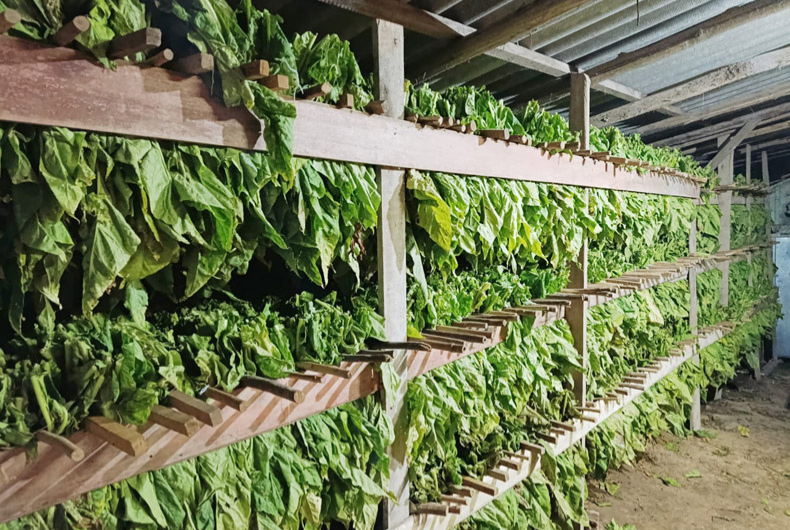 Se em nossa localidade não tivemos maiores contratempos, foi bem o contrário na propriedade de Alex Pedro Hoscheidt e de sua esposa Simone, em Alto São Martinho, interior de Santa Cruz. Por lá, na tarde de sexta-feira ocorreu temporal, com granizo e vento, que atingiu forte a lavoura de tabaco deles. A solução foi tentar ao menos juntar o que era possível das folhas, pois as plantas estavam plenamente desenvolvidas. No sábado, um grupo de vizinhos e amigos se mobilizou para auxiliar o casal. Na foto acima estão Alex e Simone, junto com os seus ajudantes, Danrlei, Samuel, João, Gustavo, José e Ornélio, que se mobilizaram e entraram em ação. Assim, puderam encher o estaleiro, como se vê na foto abaixo, para que as folhas amarelem e então possam ser colocadas na estufa. A união faz a força! Parabéns a todos os que se engajaram e ajudaram o Alex e a Simone!