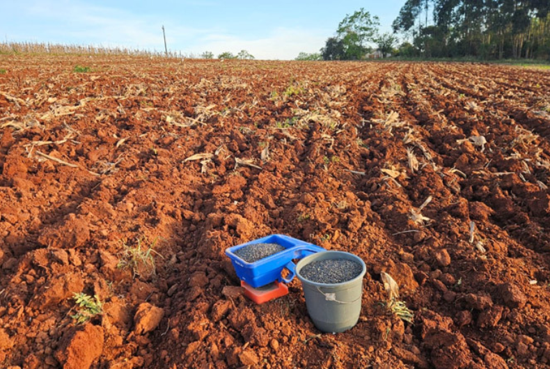 Se em uma parte da propriedade o tabaco e outras culturas se desenvolvem a pleno vapor, em outra área já miramos a safra seguinte, a do ciclo 2026/27, onde plantaremos no ano que vem. A foto abaixo é a de nossa semeadura de crotalária, em lavoura que está descansando neste ano, para que, com adubação verde e plantas de recuperação da estrutura do solo, tenhamos terra com boa fertilidade para o plantio do tabaco no ano que vem. Esse cuidado do produtor rural com seu solo é fundamental para que sempre possa ter boa produtividade e boa qualidade do que vai cultivar.