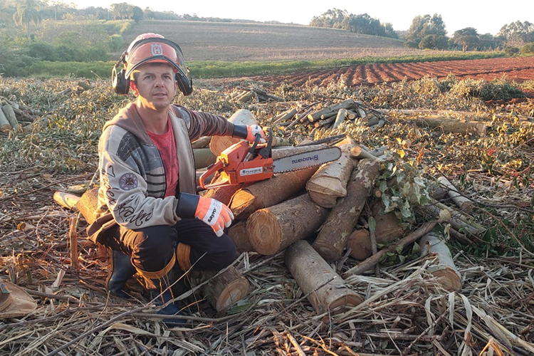 Enquanto não chega o momento de iniciar a nova safra na lavoura, várias tarefas precisam ser agilizadas. Nesta semana pretendemos concluir o corte de lenha de eucalipto para a cura do tabaco, como mostro na foto abaixo. É outra medida fundamental: dispor de florestamento de eucalipto, para atender ao menos parte das necessidades, e não precisar adquirir toda a lenha. Em nossa propriedade vamos atender metade da demanda, e o resto vamos comprar. Além de cuidar para que as árvores cortadas possam rebrotar, e novamente garantir o abastecimento dentro de alguns anos, sempre plantamos algumas mudas para seguir no reflorestamento.