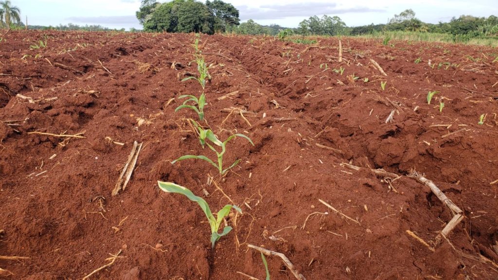 À medida que a colheita do tabaco vai sendo concluída, novas culturas começam a aparecer na paisagem, como se pode ver na foto abaixo. Esta foi a primeira lavoura na qual terminamos a colheita do tabaco, e ali já havíamos plantado milho. Com a chuva da semana passada, os grãos logo puderam brotar, e se desenvolvem muito bem.