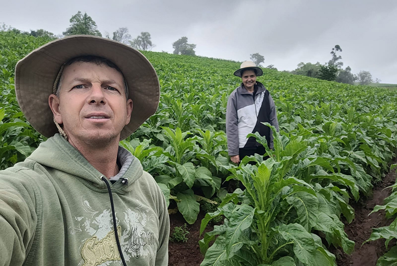 A situação é preocupante, pois precisamos iniciar a colheita do tabaco. As folhas do baixeiro estão apodrecendo, pois não dá período seco. Temos no máximo um dia de trégua e já volta a chuva. E ainda quando sai o sol, é um mormaço. Agora estamos confiantes, com a previsão indicando que nos próximos dias a chuva dará uma pausa e a temperatura não vai subir tanto. Aí é hora de também fazermos a limpeza do tabaco plantado mais cedo (foto acima). E ao mesmo tempo vem a flor que precisamos capar. Muitos produtores têm transtornos com essa tarefa, pois não há condições de entrar na lavoura por causa da chuva. O trabalho também envolve, na sequência, a aplicação do antibrotante, caso contrário toda a brotação vem com força. E com tanta chuva não há como fazer a aplicação, pois precisa ficar na planta algumas horas para ter efeito. Então, atrasa todo o ciclo e o produtor começa a se estressar.