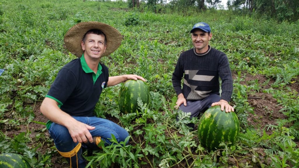 Outra propriedade que conferimos em Canoinhas, a cerca de 650 quilômetros de Santa Cruz, é a de Elcionei Fudal, na foto acima. Ele e a esposa Joelma, com duas filhas, plantam 60 mil pés de tabaco. Atuam ao lado do irmão dele e da cunhada, que cultivam mais 40 mil pés, de modo que os dois irmãos, com suas famílias, cuidam de 100 mil pés. A terra pertence aos pais dele, que já não plantam tabaco mas se ocupam de alimentos de subsistência, enquanto outros quatro irmãos dedicam-se a outras profissões. As duas famílias adquiriram uma máquina auxiliadora de colheita. Hoje três pessoas lidam com o equipamento, enquanto uma fica na beirada para recolher e colocar as folhas na carreta. Foi a maneira encontrada para colher o tabaco de 100 mil pés, sem depender de terceiros. Ainda plantaram cerca de 600 covas de melancias, mas conseguiram vender pouco. Boa parte da produção segue na lavoura ou no galpão, sem mercado. Conforme Fudal, se dependesse dessa cultura, não conseguiria subsistir. Até trouxemos melancias junto para Santa Cruz (muito boas, por sinal). Ainda plantam soja, milho e alimentos de subsistência, e criam suínos e gado de corte e de leite.