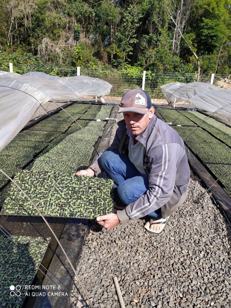 Na foto em destaque, estou junto aos nossos canteiros ao lado do meu colega de página Fumicultores do Brasil, o paranaense Anderson Rebinski, que nos visita nesta semana, em Santa Cruz, ao lado de sua esposa Ingrid. Além de mim e do Anderson, a página é integrada ainda pelo catarinense Alan Toigo, natural de Água Doce e hoje radicado em Santa Cruz. Anderson e Ingrid moram em Ivaí, onde também produzem tabaco. Na foto se pode ver como as mudas estão fortes, já plenamente desenvolvidas.