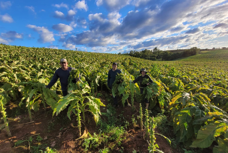 Olá, pessoal! Tudo bem? Começamos esta semana com friozinho, mas com sol. Na semana passada, o acumulado da chuva chegou a 60 mm aqui em nossa propriedade. E a noite de sexta-feira foi de vento muito forte, que causou muitos estragos nas lavouras, em especial com a quebra de folhas do tabaco, ventania que ainda perdurou em parte do sábado. Estávamos fazendo desponte das flores e aplicando antibrotante, e a tarefa fica muito dificultada com vento. No domingo, o tempo melhorou, e então foi a vez de muitos produtores irem às lavouras, tanto para colher tabaco quanto para seguir nas demais tarefas. Nosso vizinho, seu Arsênio Dupont, inclusive aproveitou o dia para colher trigo, cuja safra foi bastante prejudicada pelo clima, em qualidade e em produtividade. Como ele comenta, sequer dará para recuperar o custo de produção.