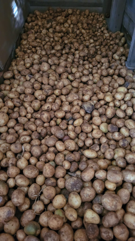 Se estamos intensificando a colheita do tabaco, também é a época de colher batatinha. Na pequena propriedade, é preciso investir na diversificação, tanto de fontes de renda quanto para assegurar o alimento na mesa, e evitar que todos os produtos precisem ser adquiridos no mercado.