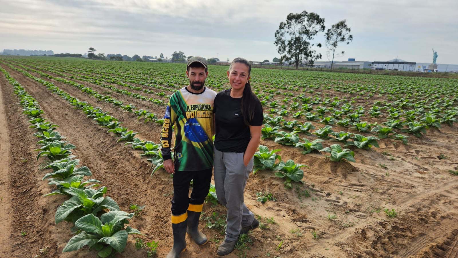 Outra propriedade que conhecemos é a do casal Rafael Pereira da Rosa e Michelle de Brittos Ranakoski, em Araranguá (SC), onde o tabaco foi plantado há 40 dias. A região já enfrentava escassez de chuva. Enquanto aqui teve essa chuvarada toda, lá a precipitação foi bem controlada, totalizando entre 30 e 40 milímetros.