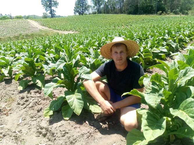 Roniel diz que nasceu e cresceu na propriedade de 22 hectares dos pais, que cultivam tabaco há duas décadas, e hoje ele próprio possui chácara de 15 hectares. Concluiu o ensino fundamental e então decidiu apostar na agricultura. Os Weber têm ainda um tambo de leite, que complementa a renda. Do que a família possui, ao menos metade foi assegurada com a receita gerada pelo tabaco. Em 2019 fizeram mais um investimento: adquiriram máquina para auxiliar na colheita. Têm três estufas elétricas, duas de gradilho e uma de grampo. É o tabaco gerando progresso em diferentes regiões.