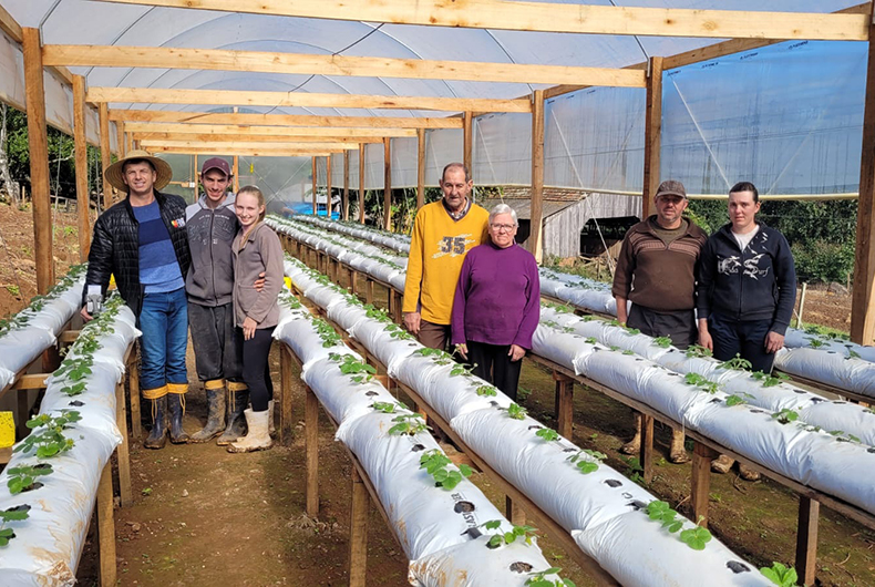 A família Wehner já chegou a plantar 62 mil pés de tabaco em safras anteriores, mas na última reduziu para 55 mil, e a tendência é de que venham a diminuir ainda mais para a próxima temporada. É que, além de ajudar na lavoura, Guilherme obtém uma receita extra interessante com o trabalho como marceneiro, fazendo caixas de abelhas, prensas, podadeiras e outros utensílios domésticos. Como a mãe dele, Janice, em virtude de um problema de saúde, não pode mais ficar ao sol forte, eles agora investiram R$ 26 mil em uma estufa para a produção de moranguinhos e, com isso, cada vez mais diversificam as atividades. E, claro, ainda plantam alimentos e criam animais para a subsistência.
