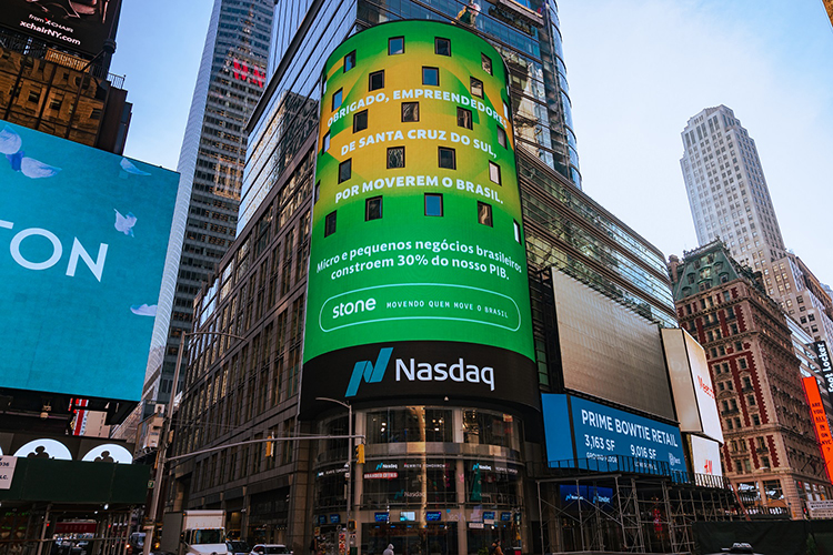 No painel fixado junto ao prédio da bolsa de valores Nasdaq, lia-se, sobre um fundo com as cores do Brasil: “Obrigado, empreendedores de Santa Cruz do Sul por moverem o Brasil.”