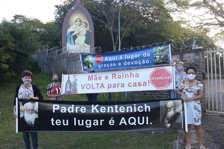 Um grupo de fiéis devotos da Mãe, Rainha e Vencedora Três Vezes Admirável de Schoenstatt se reuniu em frente ao portão do Santuário de Schoenstatt, à margem da BR-471, no Bairro Santuário, em Santa Cruz do Sul, na tarde dessa sexta-feira, 20. Eles ergueram faixas contra a possibilidade de o Santuário ser removido do local atual e se mudar para o Centro da cidade, como informado pela administração.