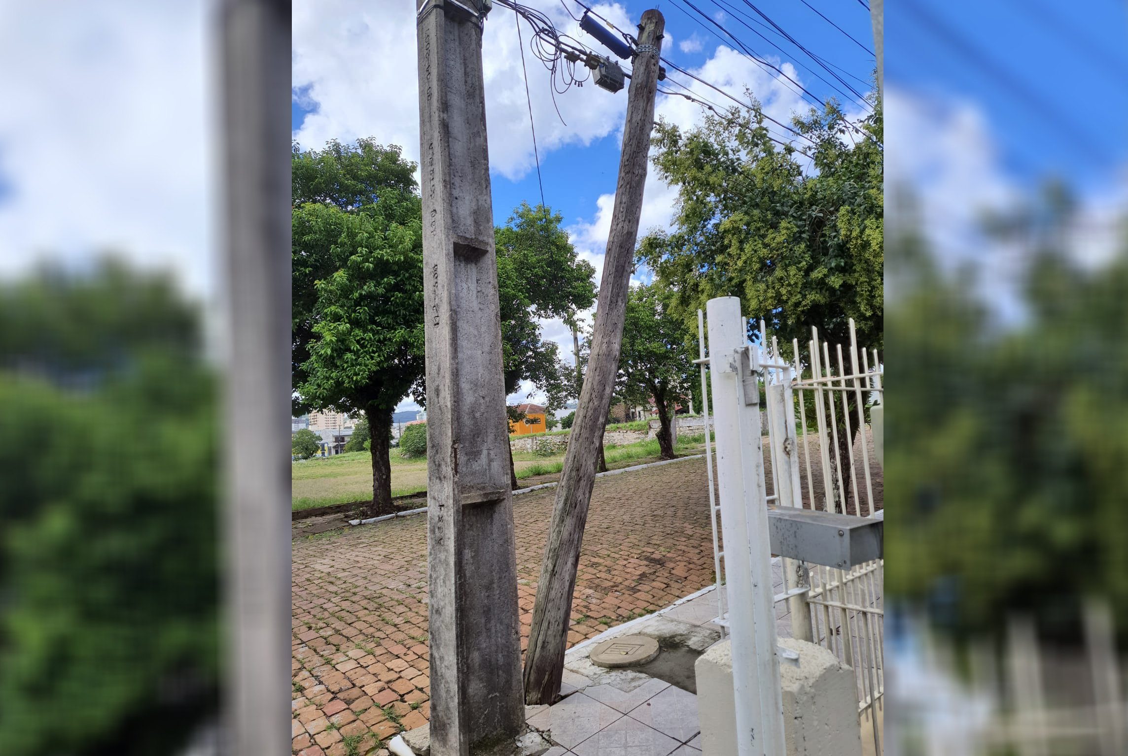 Um leitor informou a Gazeta do Sul sobre a situação de um antigo poste de madeira na Rua Presidente Rodrigues Alves, no Bairro Goiás, que está sob claro risco de queda. Segundo o leitor, o poste foi mantido mesmo após a RGE instalar uma estrutura de cimento ao lado, há mais de três anos, e tem cabos conectados. Com as chuvas dos últimos dias, ele ficou ainda mais inclinado e, além disso, está nitidamente partindo na base.