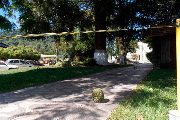 Uma situação inusitada levou a Prefeitura de Sinimbu a manter, desde segunda-feira, 3, cordões de isolamento nos arredores da Praça do Monumento do Imigrante, no Centro da cidade. O motivo é a queda de pinhas, que podem acabar atingindo quem passa por ali.