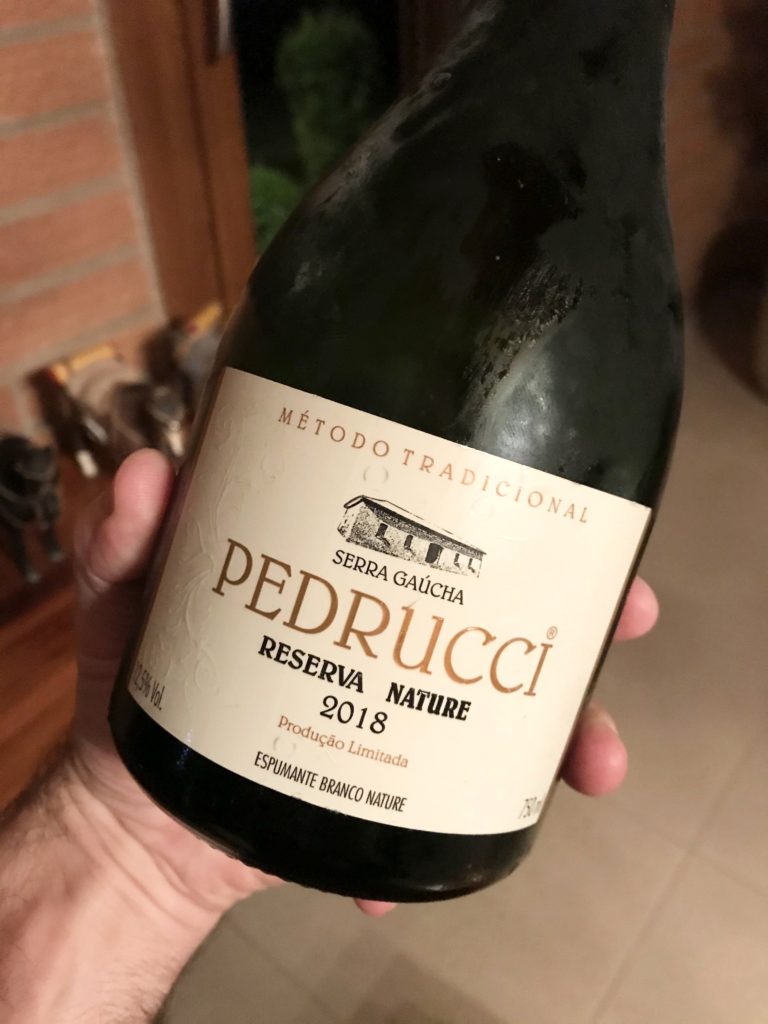 Acompanho e conheço o enólogo Gilberto Pedrucci há um bom tempo e sempre chamo u – m e a atenção o seu foco na busca da excelência produtiva dos espumantes da sua Casa Pedrucci, de Garibaldi, na Serra Gaúcha. Nestes últimos anos vem colhendo os frutos deste seu incansável trabalho na vinificação, acumulando prêmios e méritos de seus rebentos espumosos! Um desses bons espumantes é o Casa Pedrucci Reserva Nature 2018, elaborado pelo método tradicional e, como o nome diz, um Nature, ou seja, não leva adição de açúcar no licor de expedição. É elaborado com as uvas Chardonnay, Pinot Noir e Riesling Itálico, e permanece em autólise por 30 meses, maturando as leveduras dentro da garrafa.