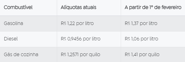 As alíquotas passaram para os seguintes valores: