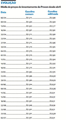 Na segunda-feira, a Petrobras anunciou um reajuste de preços. A alta da gasolina foi de 6,3%, com o litro em R$ 2,69 nas refinarias, enquanto o diesel registrou elevação de 3,7%, com o litro a R$ 2,81. Foi a primeira alteração desde abril, quando a nova presidência da estatal tomou posse.