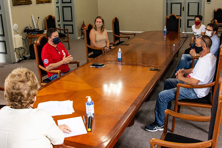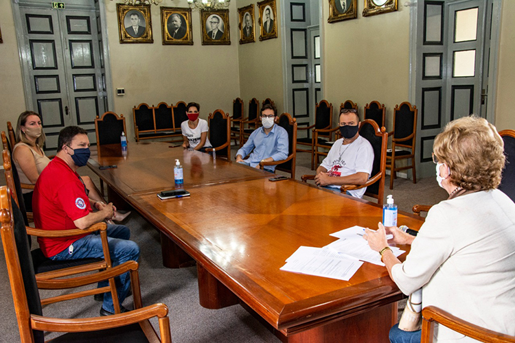 Criado há pouco menos de uma semana, o Comitê Popular de Combate à Covid-19, foi recebido na manhã desta segunda-feira, 8, pela prefeita Helena Hermany e pela secretária municipal de Saúde, Daniela Dumke, no salão nobre da Prefeitura. O grupo, formado por representantes de movimentos sociais, partidos políticos, sindicatos, representações religiosas e do Conselho Municipal de Saúde, professores e pessoas independentes, tem o objetivo de pensar soluções conjuntas para o enfrentamento da atual crise provocada pela pandemia.