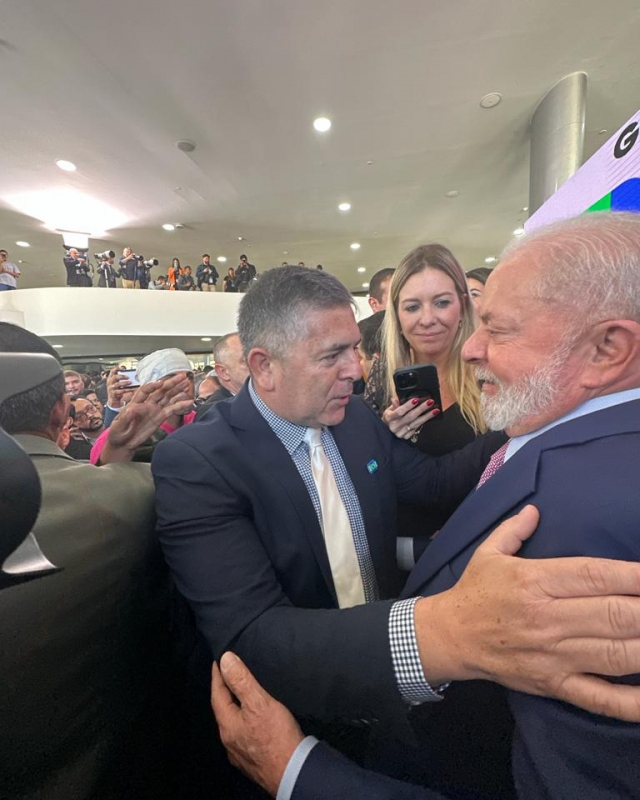No quarto dia em busca da liberação de recursos e encaminhamento de projetos em Brasília, o prefeito de Pantano Grande, Mano Paganotto, esteve com o presidente da República, Luiz Inácio Lula da Silva, na quinta-feira (foto). O encontro ocorreu no Salão Nobre do Palácio do Planalto, durante a cerimônia de posse do novo ministro do Turismo, Celso Sabino (União Brasil/PA).