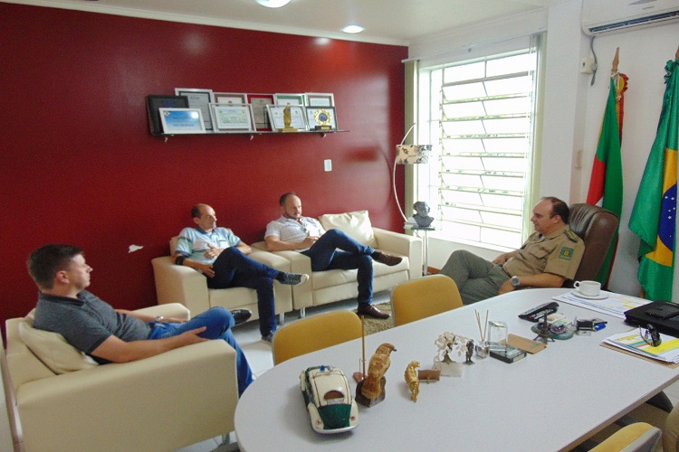 Na tarde desta segunda-feira, 15, no quartel em Santa Cruz do Sul, o Comandante do Comando Regional de Polícia Ostensiva do Vale do Rio Pardo, Coronel Valmir José dos Reis, recebeu a visita do prefeito de Sobradinho, Luiz Affonso Trevisan, do presidente da Câmara do Comércio Indústria e Serviços, Emerson Torrel, e presidente do Sindicato do Comércio Varejista do município, Vianei Cezar Pasa.
