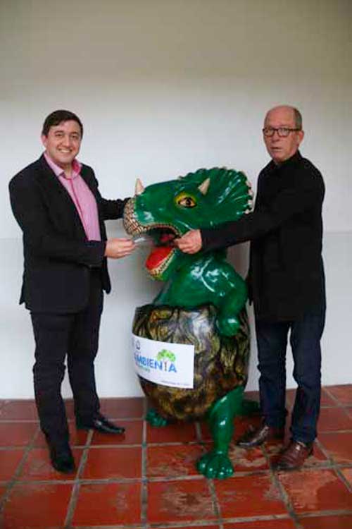 Lixeiras em forma de dinossauro fazem parte do projeto Ambienta Candelária