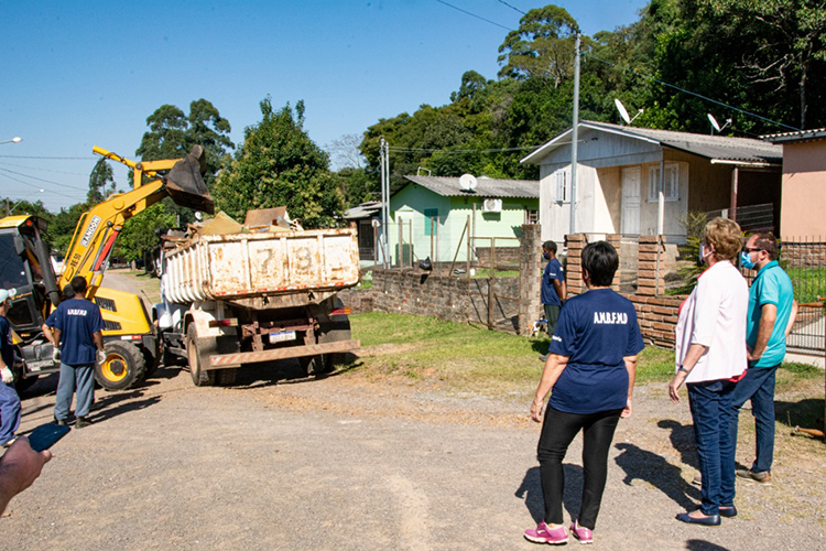 Um mutirão de limpeza promovido pela Associação de Moradores do Bairro Faxinal Menino Deus contou com o apoio da prefeitura de Santa Cruz do Sul nesta segunda-feira, 3. Um caminhão e uma retroescavadeira auxiliaram no recolhimento do entulho.