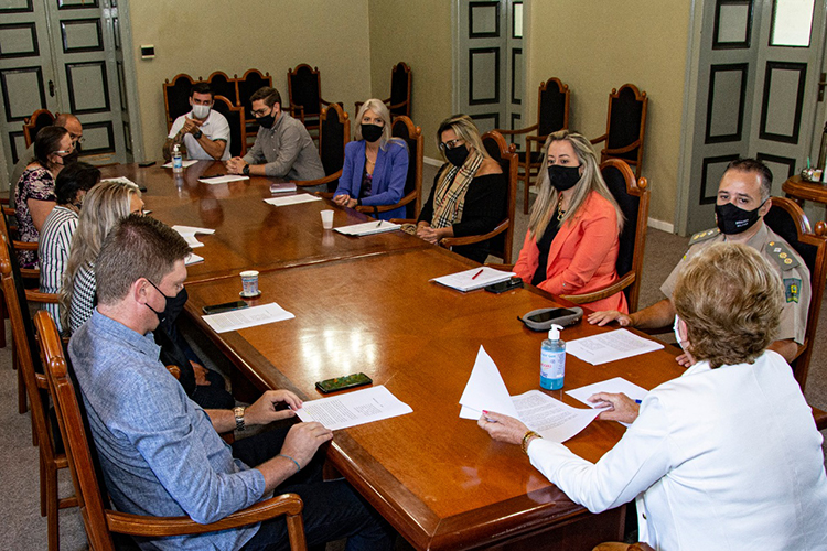 Em reunião no Palacinho na manhã desta quinta-feira, 22, a prefeita Helena Hermany apresentou uma nova proposta para o projeto de lei Encontro Seguro, iniciativa da vereadora Nicole Weber, que foi vetado pelo Executivo em razão de um parecer técnico da Procuradoria-Geral do Município. Os ajustes no texto foram construídos em conjunto com a Secretaria de Habitação, Desenvolvimento Social e Esporte, o Conselho Municipal e o Escritório de Defesa dos Direitos da Mulher, a Brigada Militar e a vereadora.