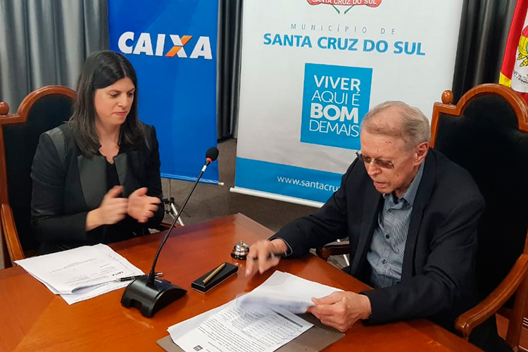 A Prefeitura de Santa Cruz do Sul assinou na tarde desta sexta-feira, 28, o Financiamento à Infraestrutura e ao Saneamento (Finisa) para investir R$ 15 milhões no município nos próximos meses. O investimento inclui novos postos de saúde, mais uma creche, ampliação de escolas e aquisição de máquinas para obras, entre outros anúncios. A assinatura do empréstimo ocorreu durante ato no Salão Nobre do Palacinho.