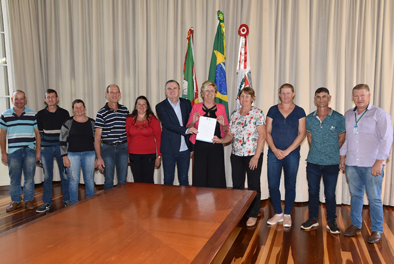 A prefeita Helena Hermany e o vice-prefeito Elstor Desbessell receberam representantes da comunidade para firmar a parceria no Salão Nobre do Palacinho. Helena mostrou-se bastante feliz com a possibilidade de o prédio voltar a ser usado pela comunidade. “É muito positivo que o município possa contribuir para que os moradores desta localidade tenham uma sede para realizarem suas atividades comunitárias”, destacou. Desbessell parabenizou a comitiva pela mobilização. “Desejamos que vocês façam bom uso dessa estrutura e que ela possa ser bem aproveitada”, comentou.