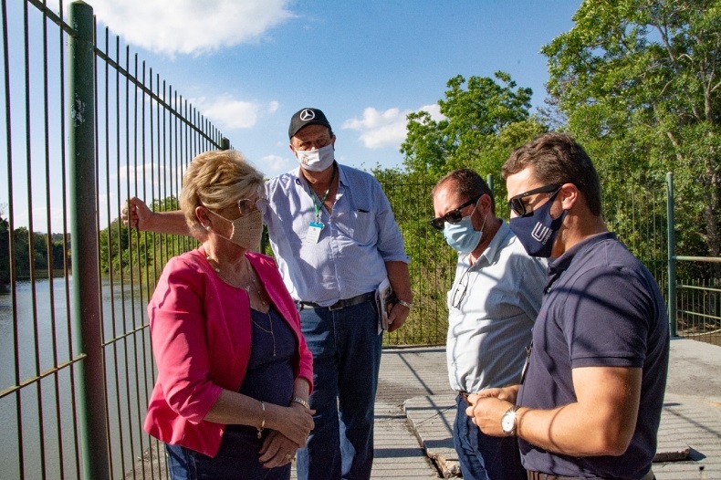 A prefeita de Santa Cruz do Sul, Helena Hermany, esteve na tarde de quinta-feira na barragem do Rio Pardinho, que capta água para o Lago Dourado. Acompanhada pelos secretários municipais de Agricultura, Hardi Lúcio Panke, e Meio Ambiente, Saneamento e Sustentabilidade, Jaques Eisenberger, ela foi verificar as condições da estrutura e pedir melhorias e ajustes à Corsan, responsável pelo local.