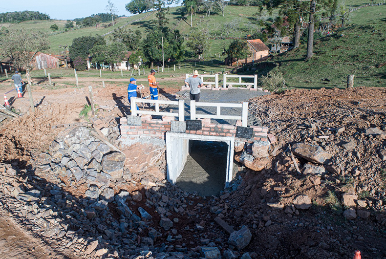 A Secretaria de Obras e Infraestrutura (Seoi) realizou, na última segunda-feira, 11, a concretagem e a instalação dos guarda-corpos da ponte da estrada de Cerro Alegre Alto. A obra teve início na quarta-feira, 6. A nova travessia, com oito galerias de concreto armado, foi instalada em substituição a uma ponte de madeira.