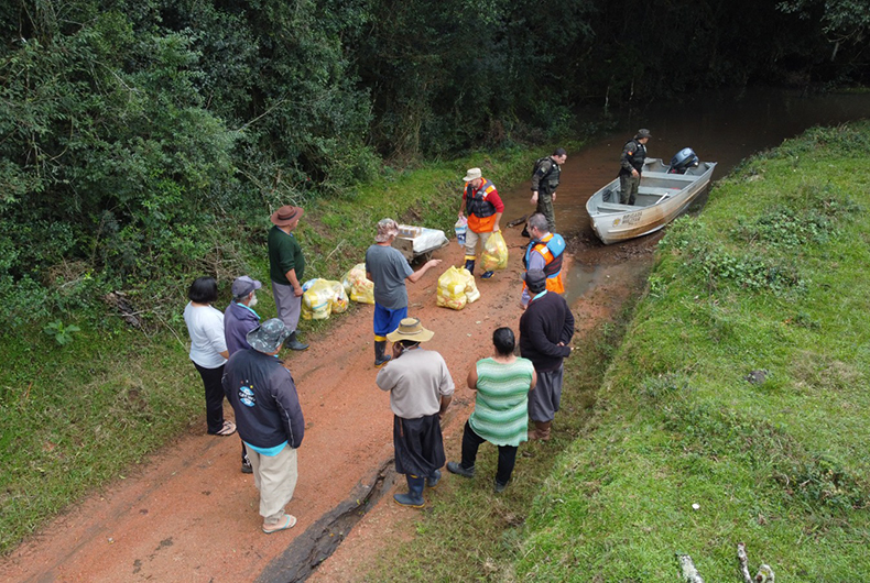 A Prefeitura de Encruzilhada do Sul, em parceria com a Patrulha Ambiental da Brigada Militar (Patram) de Rio Pardo, realizou, na manhã deste sábado, 4, a entrega de mantimentos às famílias ilhadas na localidade do Buriti, a 80 quilômetros do município, desde a última terça-feira, 30.