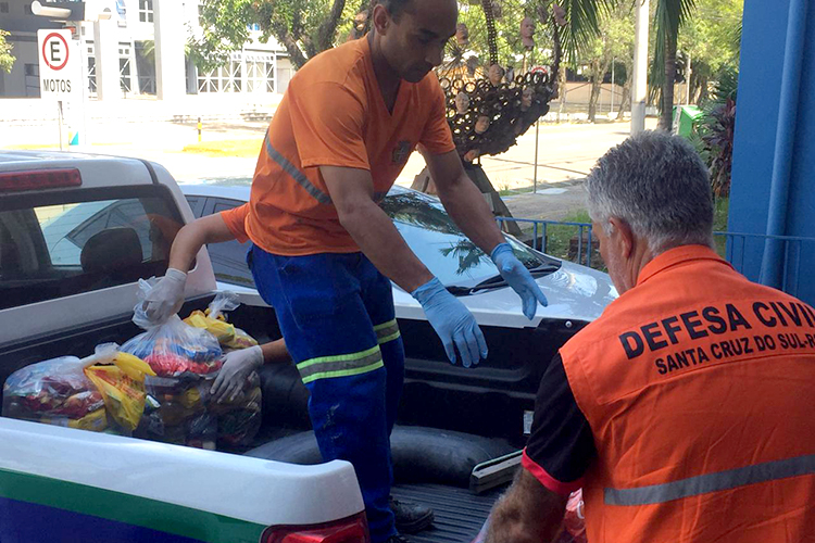 Uma equipe da Prefeitura de Santa Cruz do Sul, formada pela Defesa Civil, Guarda Municipal e Secretaria de Políticas Públicas e Assistência Social, iniciou, nesta quinta-feira, 26, a distribuição de kits com alimentos, roupas e produtos de higiene e limpeza para 100 famílias que se cadastraram e foram consideradas prioritárias para recebimento das doações.