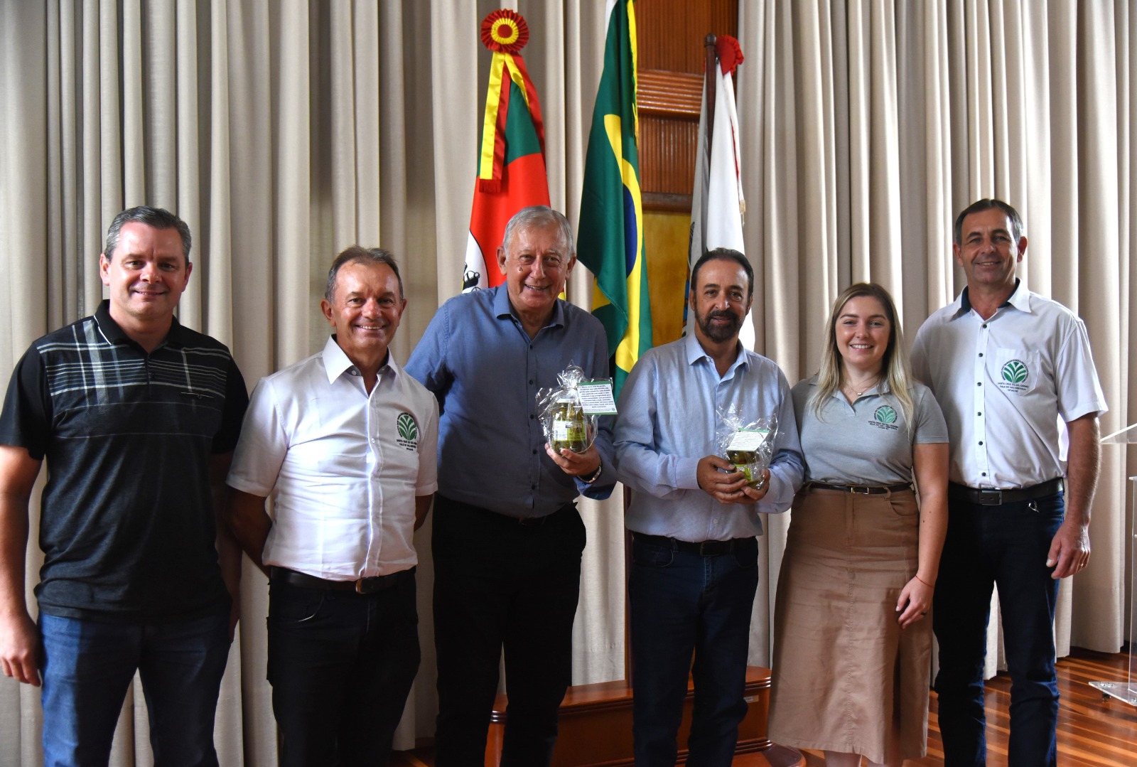 Estiveram presentes o prefeito Sérgio Moraes, o secretário de Agricultura, Zeno Assmann, o subsecretário de Agricultura, Edson Schuck, além do presidente do Sindicato, Sérgio Luiz Reis, da tesoureira Marieli Elena Muller e do vice-tesoureiro Gerson Morsch.